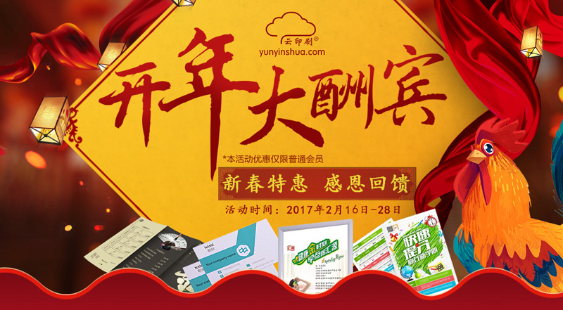 有句話說:好年頭必有好兆頭。2017,開市好禮降臨!云印刷開年大酬賓,印刷采購(gòu)大優(yōu)惠,和你一起走鴻運(yùn)。