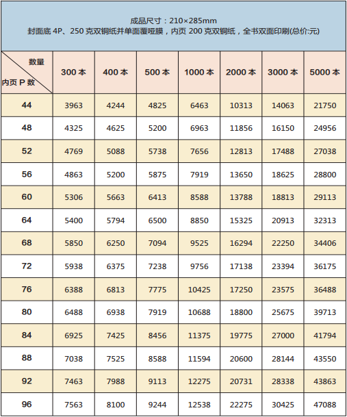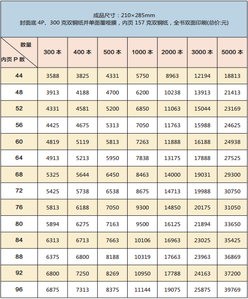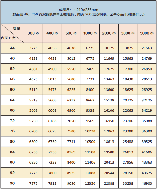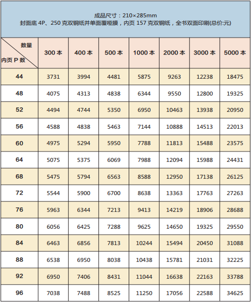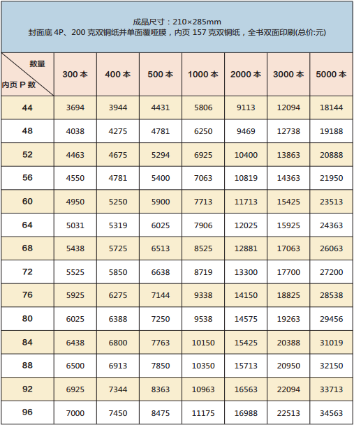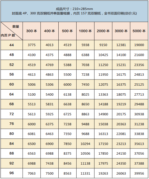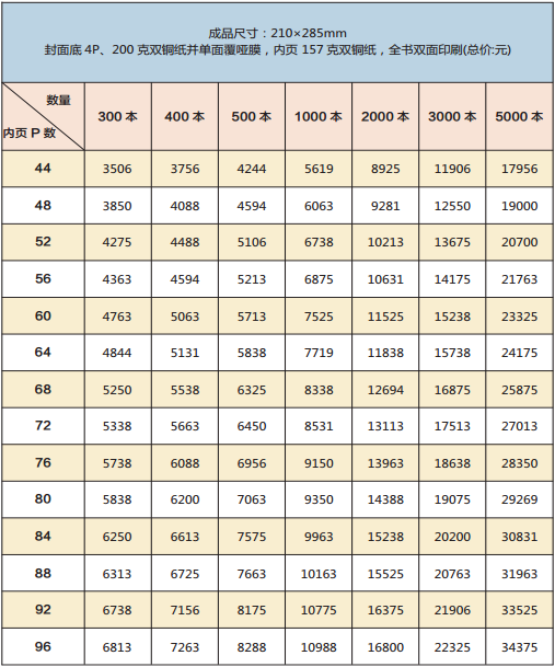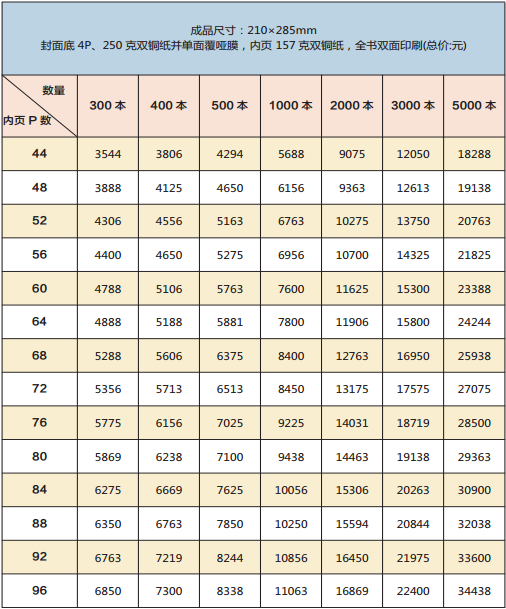 分享此信息 A4畫冊 宣傳冊 普通會員 價格表>> 紙張:封面250G內(nèi)頁157G尺寸:210mm *?285mm 數(shù)碼快印 1.騎馬釘畫冊 2.鎖線精裝畫冊 3.鎖線膠裝畫冊 4.對裱簡裝畫冊 5.對裱精裝畫冊 合版(拼版)印刷 紙張:封面200G內(nèi)頁157G/250G內(nèi)頁157G/250G內(nèi)頁200G/300G內(nèi)頁157G ? 尺寸:210mm *?285mm 1.騎馬釘畫冊(合版) 2.膠裝畫冊(合版) 3.鎖線膠裝畫冊(合版) *成為高級會員享受更多折扣 上一篇金九銀十,好消息不斷!云印刷新產(chǎn)品上線了下一篇面對同行印刷價格戰(zhàn),應(yīng)該怎么辦?